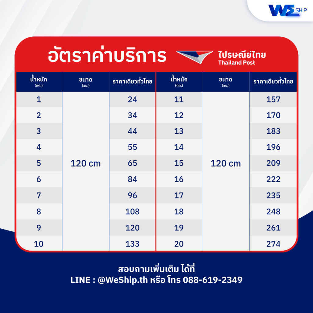 ขนาดกล่อง ( กว้าง + ยาว + สูง ) ไม่เกิน 280 cm และ ด้านใดด้านหนึ่งต้อง ไม่เกิน 150 cm