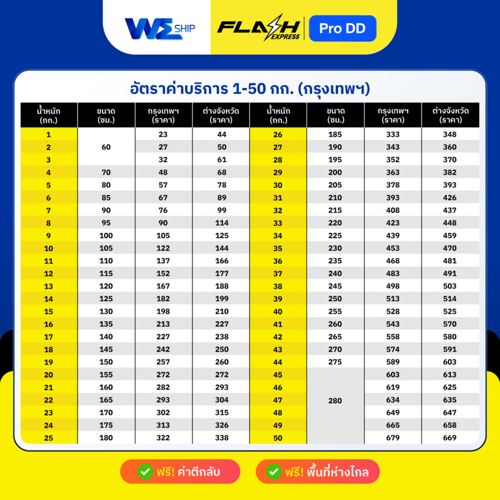 คิดค่าขนส่งจากน้ำหนัก และขนาด ไม่คิดค่าพื้นที่ห่างไกล ตีกลับฟรี โดยการชำระค่าขนส่งผ่านระบบเท่านั้น ค่าบริการ COD 2%