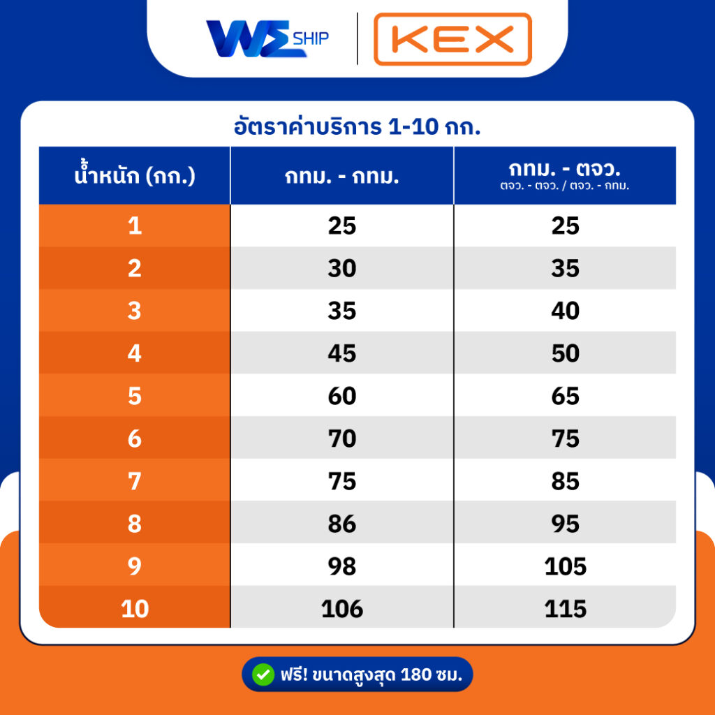 ขนาดกล่อง ( กว้าง * ยาว * สูง ) หาร 5000 และ (กว้าง + ยาว + สูง) ไม่เกิน 180 cm ด้านใดด้านหนึ่งต้อง ไม่เกิน 100 cm